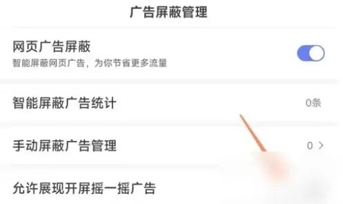 就进入到设置后找到广告屏蔽管理。